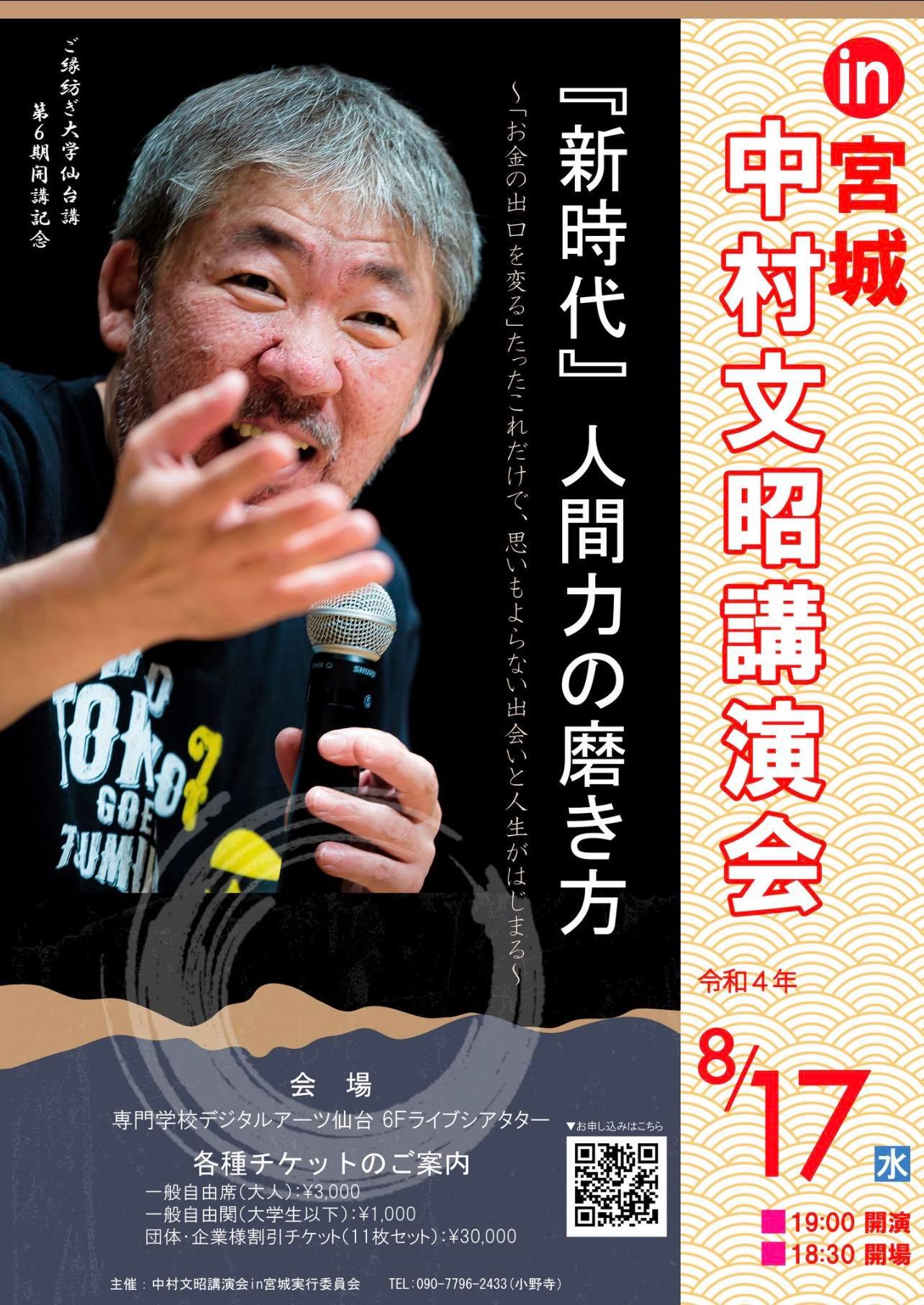 | 申し込みURL | https://nakamurafumiakikouenkaisendai.peatix.com/view |