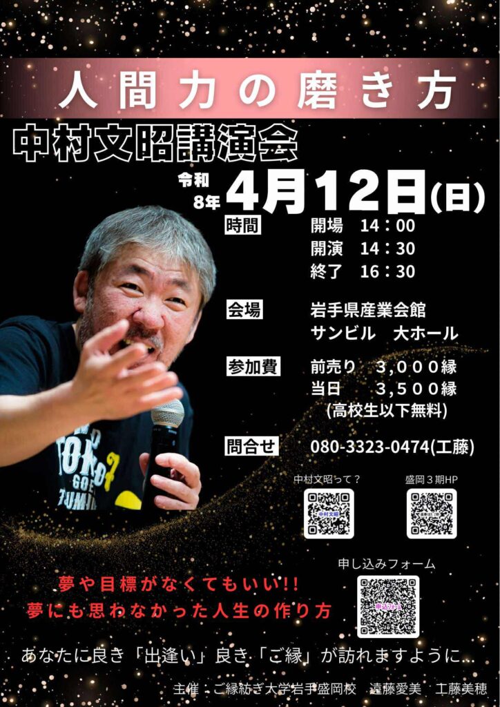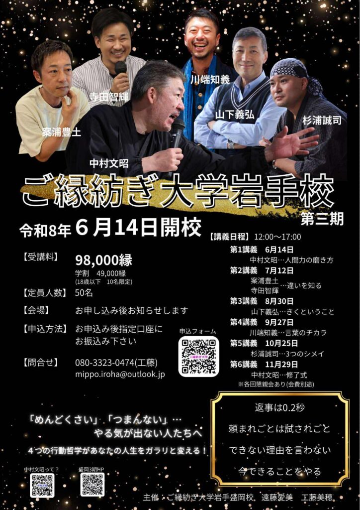 | 主催者 | ご縁紡ぎ大学岩手盛岡校 遠藤愛美 工藤美穂 |